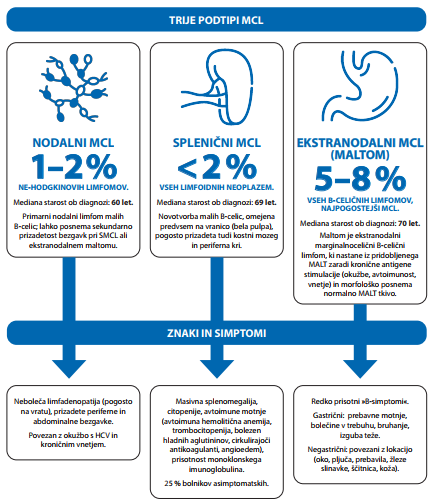 Kateri podtipi marginalnoceličnih limfomov obstajajo? Kakšni so njihovi znaki in simptomi? Kako jih diagnosticiramo? Kako pogosta je transformacija v limfom velikih B-celic? Kakšno prognozo imajo bolniki? Te informacije smo strnili v infografiki.
